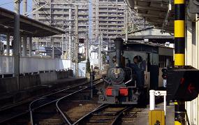 さらに、15日(日)は完全に先週同様のパターンで、かずまるを松山市駅近くへ連れて行った後、10キロ走って、古町から坊っちゃん列車に乗って道後温泉へと向かった。 乗務員は翼君他2名、ついに氏名の判らない運転士が登場した。乗客は古町からは10名ほどであったが、最終的には着席定員満席に近かった。1号機とは、市役所電停近くですれ違ったが、よく考えると、先週も14号機、多分、先週火曜日は本当に定期点検だったらしく、その関係で運用がずれたものと思われる。 で、実は明日、最後のタイムトライアルを企んでいる。(2009.11.15) |