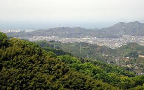 その五十崎大凧揚げであるが、今日は風が強いので、期待していたら、逆に風が強すぎて、かずまる所有の小型の凧はくるくる回って小田川不時着という結果となってしまった。その内容は、かずまる1号が2回、2号は1回の計3回となってしまった。 さて、その結果はそれはそれで楽しかったわけだが、今年に関しては、別の興味もあったのである。今年は坂本龍馬ブームであるのだが、その1回目の脱藩ルートとして、昭和63年頃に大洲市の村上氏が提案したルートが現在の通説となっている。そのルートというのが、左上画像の尾根沿い(推測で向かって左から、水ケ峠〜泉ケ峠〜耳取峠)を移動して、現在の宿間から長浜までは船で移動したものらしい。(2010.05.05) |
