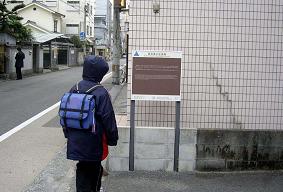 衣山駅から郊外電車に乗り、古町から城北線で勝山町下車。そこからほどなくして、「高浜虚子住居跡」がある。これは、かつて松山市のホームページの中に「俳句の里巡り」というのがあって(現在は閉鎖中)、その句碑巡りの内容を自費出版したことがある。その時はかずまるも幼稚園年中ということもあり、今、もう一度めぐってみるのも良いだろう。あるいは、雑多に位置する句碑を整理付けて回ってみるだけの勉強をしてみるのもいいのかもしれない。 さて、この「高浜虚子住居跡」であるが、かつての松山市教育委員会の「俳句の里巡り」によると、ここは高浜虚子の生家ではなく、何度か引越しをして、子規がたずねてきた場所だと言う。が、同サイトによると、虚子の生家は「子規生い立ちの家(湊町4丁目1番地)の北隣りにあったが・・・」とあるのに、ここへ転居してから、河東碧悟桐に紹介をしてもらっている。結局子規の南隣に生まれても、それだけでは子規とはつながらなかったらしい。 その後は、正岡子規の生家や母親と妹(律)の家があったとされる中の川通りの中央分離帯にある句碑を見て、「こんなところに住んでいたら、車通りが多くて、危なかっただろう。」などと一人ボケをやったりしながら時間をつぶす。その程度の散策であるのに、かずまるは疲れた、などと言うものだから、これからは少々体力をつけさせる必要がありそうだ。 そして、やってきたのが「河東碧梧桐誕生地(静渓邸の跡)」である。河東碧梧桐(本名・秉(へい)五郎)は、明治6年2月26日、父静溪の5男として、ここに生まれた。彼が17歳の時に子規がここへやってきて、彼とキャッチボールをしたという。正岡子規が野球殿堂入りしたということは、ここが日本における野球普及の地と言っても大げさではないだろう。