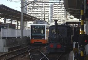 とりあえず、2011年1月22日(土)10時41分発 の坊っちゃん列車で道後温泉へと向かう。乗務員はまろん君以外は始めての方であり、時の流れを感じる。乗客は我々を含めて3名。1号機だったこともあり、 前後どちらに乗るか迷ったものの、その後誰も乗り込んでこなかったため、後客車に乗車していたら、単なるバカでもあった。で、車掌の案内では、大手町のダ イヤモンドクロスの説明が追加されていた。「・・・その光景を撮影される方も・・・」というところでは、思わずかずまると顔を見合わせたものであった。 さて、道後温泉に到着後は、坊っちゃん列車の転換シーンを撮影し、久しぶりにショップ坊っちゃんを物色 して、意味もなくそのまま市内電車に乗る。そして、大街道で下車して、某ファーストフードで昼食。かずまるには「まさかお父さんと一緒に入ることになると は思わなかった」といわれてしまった。 その後、松山城へはリフトで上がり、時間を適当につぶしてからかずまるを塾へと連れて行く。この塾も土 曜日としては今回が最終回となる。来週からはどのような展開が待っているのか。