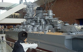 さて、ここ数年のGWは内子町五十崎の大凧合戦見物だったのだが、今年は何としたことかは不明だが、妻が突然広島のフラワーフェスティバルに行きたいと言い出したため、急きょ広島と呉の大和ミュージアムへ出かけることになった。 5月4日午前8時の高速船で呉へと向かう。かずまるに大人運賃が必要になったのは大変大きいが、高速船については、生徒手帳を提示すれば2割引になる。 最初に出かけた大和ミュージアムは、例の100分の1模型が目玉なのだが、個人的には、一時尾道に展示されていた「映画・男たちの大 和」の使用ロケの大和(結局見にはいけなかった)のほうに興味があり、こちらは、あーそー程度なのだが、それはそれで適度に楽しめた。ちなみに、開館とほ ぼ同時に並んだのだが、相当の人出であった。 午後からは、JRで広島へ向かうが、8両編成であるにもかかわらず、満員であった。まあ、フラワーファスティバルあり、Jリーグあり、プロ野球ありでは当然かもしれない。万一すいていたら、危機的状態である。 そのフラワーフェスティバルであるが、フラワーにだまされてはいけないようで、後で、どこに花があったのか?と首をひねることになる。むしろ、祭りの存在しない広島市民のエネルギーを感じ取ることに意義があるようである。