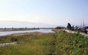 (左:西条市加茂川の古川橋右:中山川から今治方面を望む) と はいえ、かずまるの速度は落ちてきている。今後速度が上がるとは思えないのだが、現時点での行程が全くわからない。仕方がないから、西条市街に入るところ で、かずまるを歩道に寝かせて、お尻をマッサージする。だが、そんなことをしていてもきりがない。というより、下がアスファルトでは痛いだろう。というわ けで、我社の西条支社フロントロビーならば、クッションのある座椅子があるだろう。しかも、我々の行路上にある。ということをかずまるに言って、とりあえ ず、そこまで走らせる。 その我々が走っている道路は、西条では産業道路 と言われている。この道は現在県道13号(壬生川新居浜野田線)の一部である。元々が有料道路だったこともあって、他にも県道13号が西条市内にあって、 少々複雑なことになっている。しかも、その県道13号は我々が走ってきた新居浜市中心部へと向かうのだが、西条インターチェンジへ向かう(東側)道は国道 11号バイパスだったりもする。最終的にはこの道が国道11号バイパスとなるのかもしれないが、先はわからない。で、この道は元々は片側3車線の幅員を もっているが、西側が片側1車線、東側の国道11号バイパスが片側2車線ということで、片側3車線あっても仕方ないことで、片側2車線で、路側帯が非常に 広く取られている。というわけでもないのだろうが、歩道は自転車通行可能になっているにもかかわらず、橋にかかると、歩道がなくなってしまう。我々は、目 的地が道路右側にあるため、右側の歩道を走っている。この場合どうしたらよいのか?とも思うが、先のとおり、路側帯が広いため、そのまま例の「やむを得 ず・・・」を適用させていただいて、そのまま右側を走る。 そして、我社 の西条支社に到着する。さっそくかずまるのマッサージをするのだが、如何せんちょうど昼休み時間帯ということもあって、知った人と会うこともある。今日は 平日。「あれ?」ということになるが、かずまるを見せて、「かくかくしかじか」と説明する。ちなみに、先の合併云々を言っていた元上司の姿も見たが、ちょ うど午後1時になったところで、お客さんを連れてきたようだったので、あいさつをすることもできず、そのまま出発する。